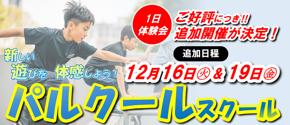 2025.11.22パルクール体験会 追加開催のお知らせ(12/16・12/19)